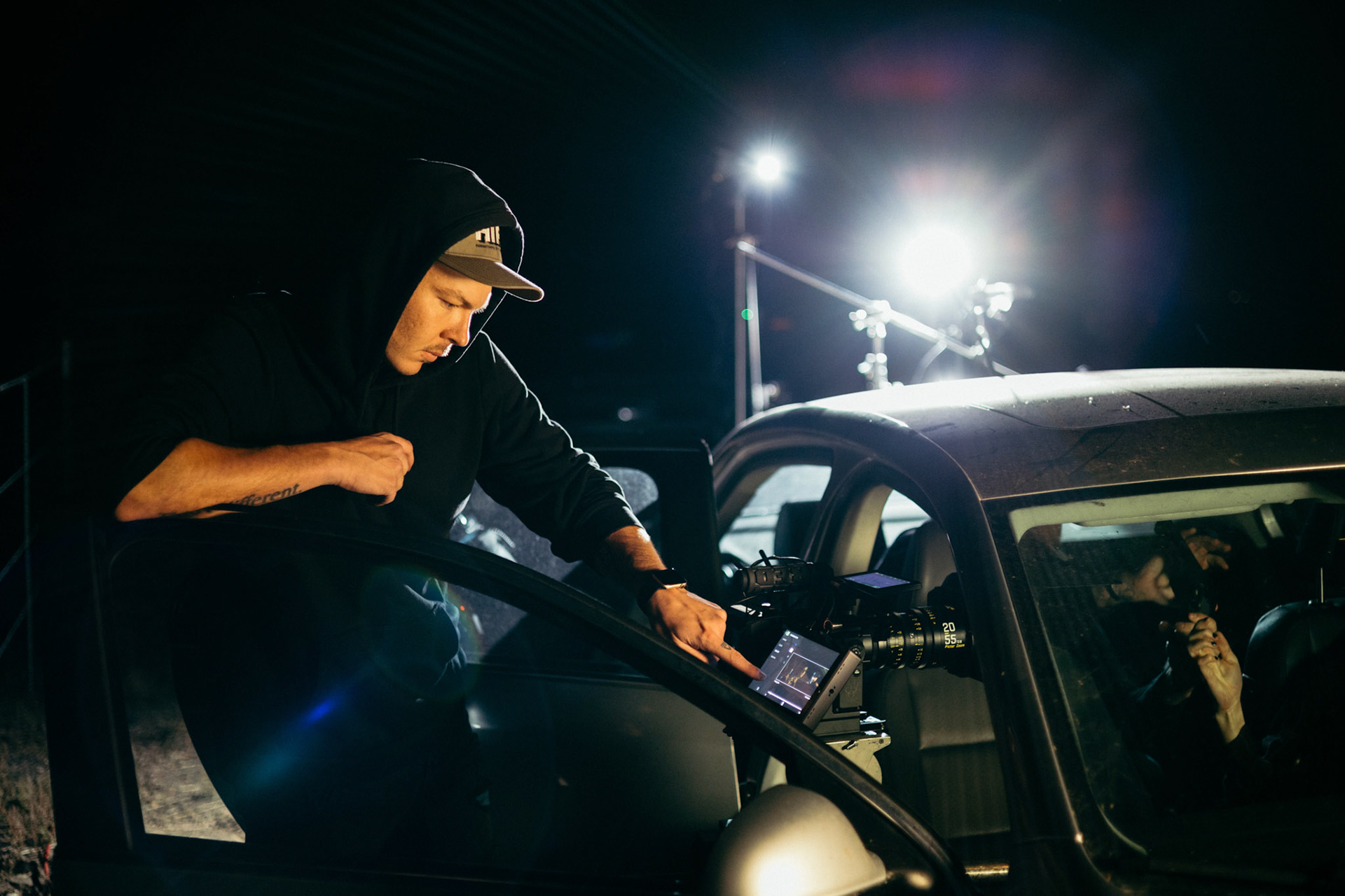 Behind the scenes shots from the short thriller film "Gravel," directed by Ryan Frazee.
